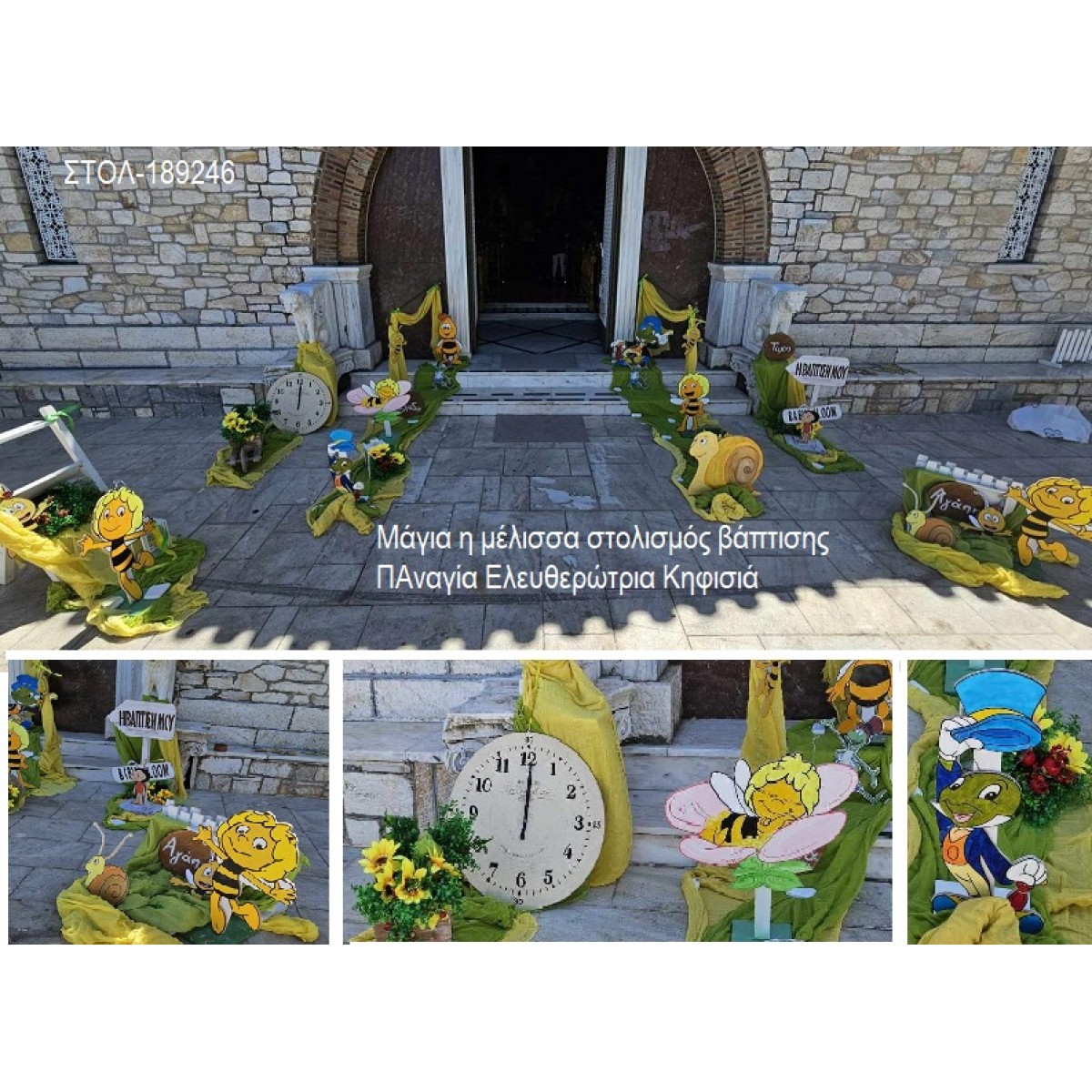Στην τιμή περιλαμβάνεται ο στολισμός κολυμπήθρας και τραπεζιού μπομπονιέρων και ευχών(αν υπάρχει βιβλίο).