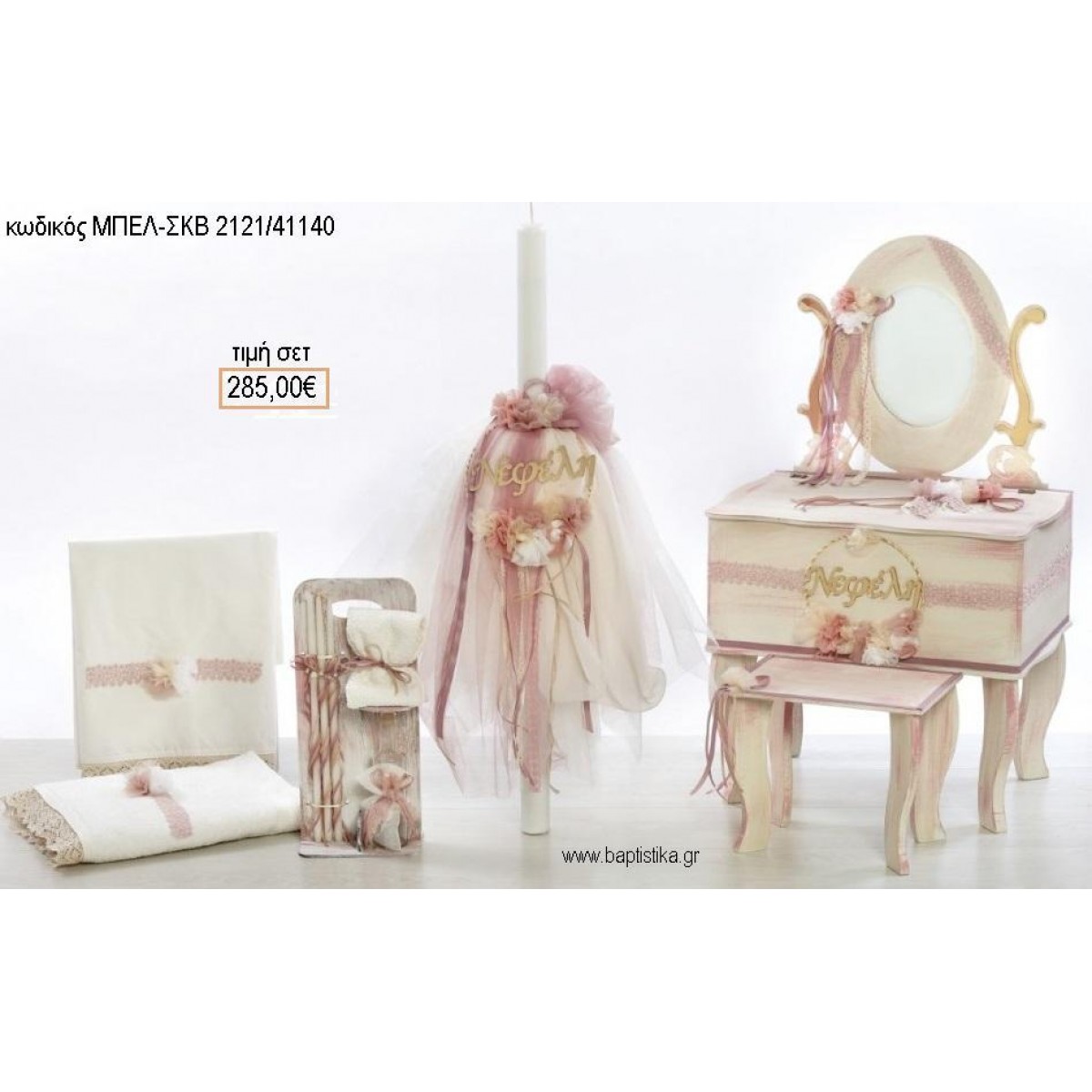 ΡΟΜΑΝΤΙΣΜΟΣ βαπτιστικό σετ με ΞΥΛΙΝΗ ΕΤΑΖΕΡΑ ΜΠΕΛ-ΣΚΒ 2121/41140 285.00€!!!