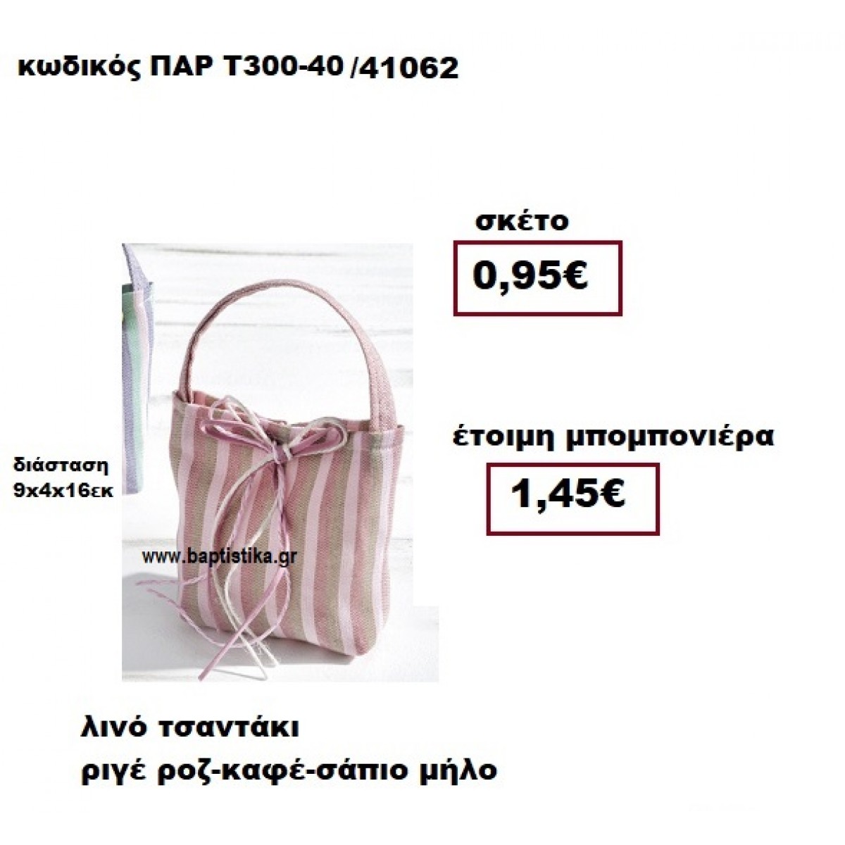 ΤΣΑΝΤΑΚΙ ΛΙΝΟ ΡΙΓΕ ΡΟΖ-ΚΑΦΕ-ΣΑΠΙΟ ΜΗΛΟ ΒΑΠΤΙΣΗΣ ΠΑΡ-Τ300-40